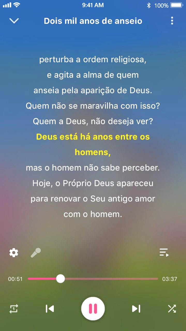 Não. Nós fornecemos uma variedade de hinos e obras cinematográficas totalmente de graça na esperança de que um número maior de pessoas ouça novas músicas do reino para que elas possam louvar a Deus e aproximar-se Dele em qualquer lugar e a qualquer hora. Você pode acessar todas as funções do aplicativo sem pagar qualquer coisa.